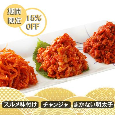 当店人気の海鮮珍味をお買い求めやすいセットにしました。ご飯が進むピリ辛韓国珍味はそのままはもちろんお料理にもお使いいただけます。